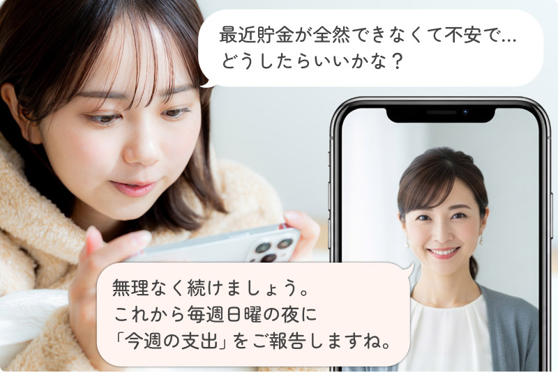 話すたびにあなたの価値観や生活リズムを学習し自然にお金の習慣をサポート。